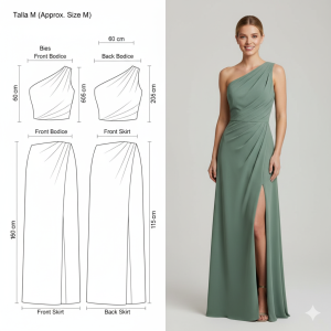 • DIY One-Shoulder Evening Gown Sewing Pattern (Free Template, Size M)