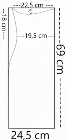 - Upper front panel – 22.5 cm wide x 69 cm high with bust curve shaping.