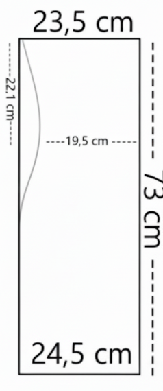 - Side panel – 23.5 cm wide x 73 cm high with waist curve shaping.